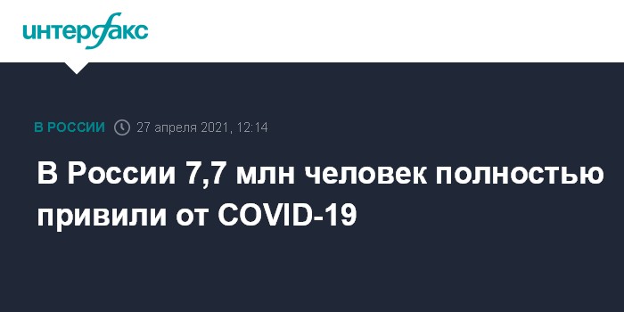 В России 7,7 млн человек полностью привили от COVID-19