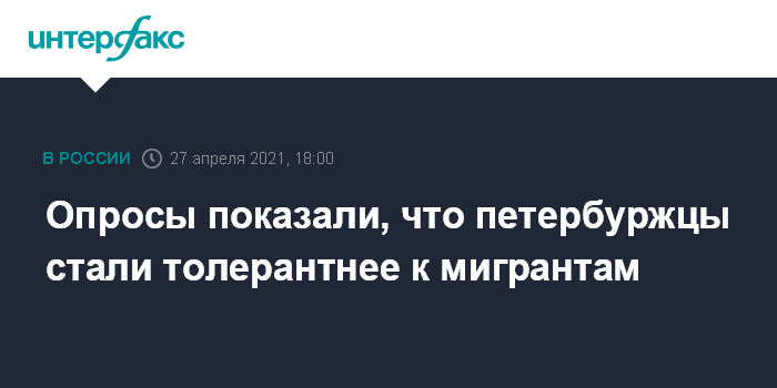 Москва. 27 апреля. INTERFAX.RU - Все больше жителей Санкт-Петербурга готовы видеть своими соседями мигрантов, следует из исследования, проведенного в Санкт-Петербургском государственном университете (СПбГУ).