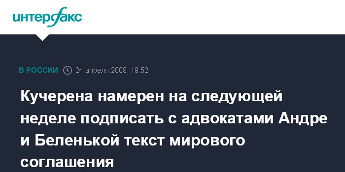 Кучерена намерен на следующей неделе подписать с адвокатами Андре и Беленькой текст мирового соглашения