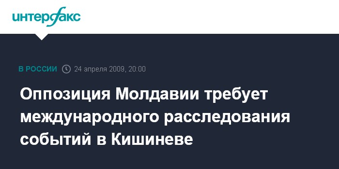 Кишинев. 24 апреля. INTERFAX.RU - Лидеры молдавской оппозиции потребовали, чтобы расследованием беспорядков в Кишиневе занялась международная комиссия.