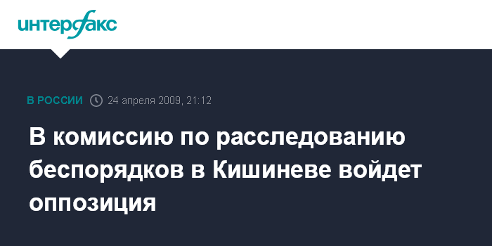 Кишинев. 24 апреля. INTERFAX.RU - В состав комиссии по расследованию беспорядков в Кишиневе будут включены представители оппозиции, заявил Верховный представитель ЕС по вопросам внешней политики и общей безопасности Хавьер Солана после встречи в пятницу с президентом Молдавии Владимиром Ворониным.