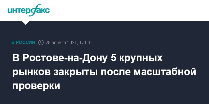 Во вторник, 27 апреля, информированный источник сообщил "Интерфаксу", что более 3,5 тысяч силовиков оцепили территорию четырех рынков, расположенных на площади около 15 гектаров в Аксайском районе на выезде из Ростова-на-Дону с двух сторон от трассы М-4 "Дон". Проверялась законность функционирования торговых площадок. Правоохранительным органам поступила информация о незаконных мигрантах, организации проституции, торговле наркотиками и оружием на этих рынках.
