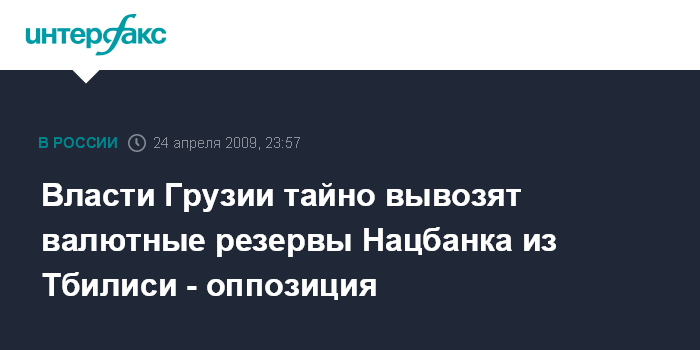 Тбилиси. 24 апреля. ИНТЕРФАКС - Грузинская оппозиция утверждает, что, по имеющейся у нее информации, власти осуществляют тайный вывоз из столицы валютных резервов Национального банка Грузии.
