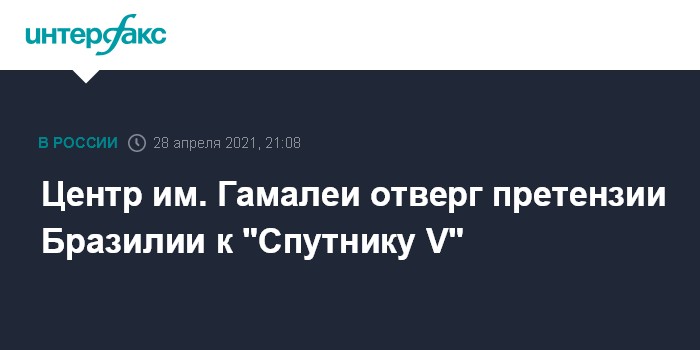 Москва. 28 апреля. INTERFAX.RU - Центр имени Гамалеи отверг претензии бразильского регулятора Anvisa к вакцине "Спутник V": они не имеют научного обоснования.