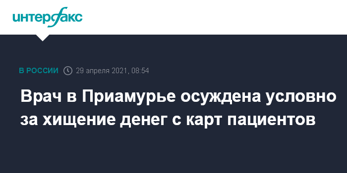 Москва. 29 апреля. INTERFAX.RU - Врач Райчихинской городской больницы в Амурской области осуждена за хищение средств с банковских карт своих пациентов, к которым она получала доступ через сотовые телефоны.