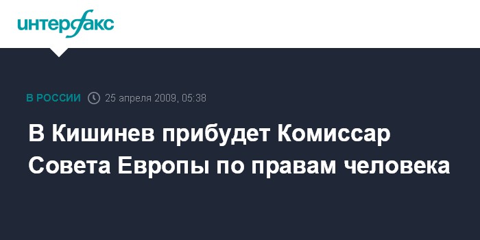 Кишинев. 25 апреля. ИНТЕРФАКС. - В Кишинев с 3-дневным визитом в субботу прибывает Комиссар Совета Европы по правам человека Томас Хаммарберг.