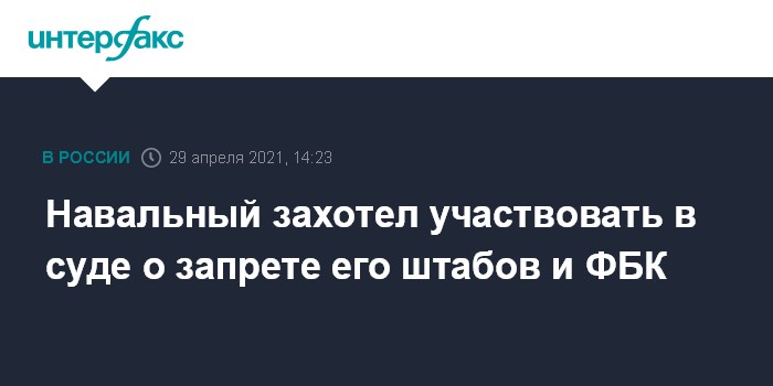 Москва. 29 апреля. INTERFAX.RU - Оппозиционер Алексей Навальный хочет лично участвовать в процессе по иску прокуратуры Москвы о признании экстремистскими и ликвидации штабов его сторонников и Фонда борьбы с коррупцией и Фонда защиты прав граждан (ФБК и ФЗПГ - признаны властями иноагентами), сообщил "Интерфаксу" адвокат Иван Павлов.