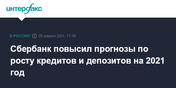 Москва. 29 апреля. INTERFAX.RU - Сбербанк улучшил прогнозы по росту кредитов и депозитов на 2021 год на фоне результатов I квартала.
