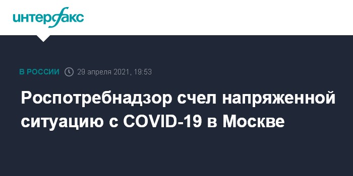 Москва. 29 апреля. INTERFAX.RU - Эпидемиологическая ситуация в Москве с коронавирусом характеризуется как напряженная, сообщили в столичном Роспотребнадзоре.