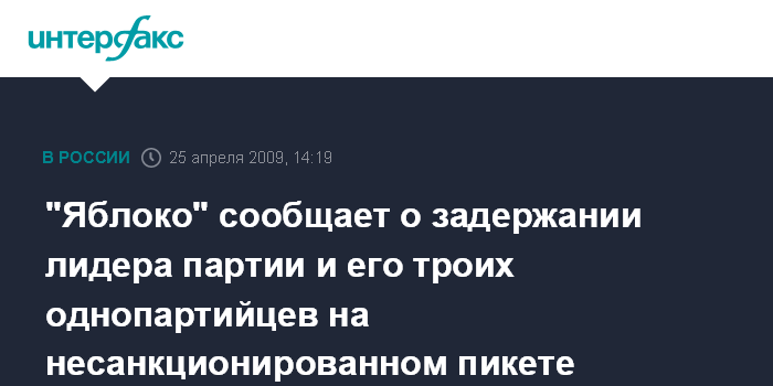 "Яблоко" сообщает о задержании лидера партии и его троих однопартийцев на несанкционированном пикете