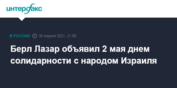 Москва. 30 апреля. INTERFAX.RU - Главный раввин России Берл Лазар объявил о проведении в воскресенье, 2 мая, акции солидарности с народом Израиля в связи с гибелью людей во время празднования Лаг ба-Омера на горе Мерон.