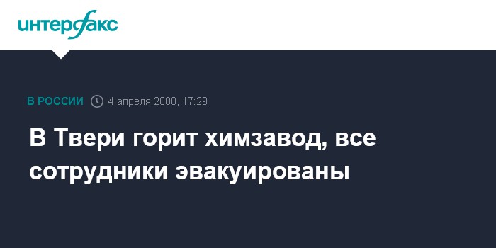 "В тушении пожара в настоящее время участвуют подразделения всех пожарных частей города. На завод выехало руководство управления МЧС по Тверской области", - сказал собеседник агентства.