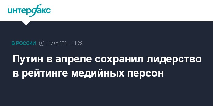 Путин в апреле сохранил лидерство в рейтинге медийных персон