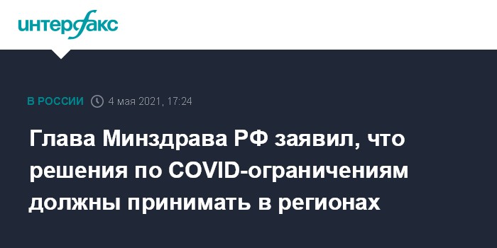 Глава Минздрава РФ заявил, что решения по COVID-ограничениям должны принимать в регионах