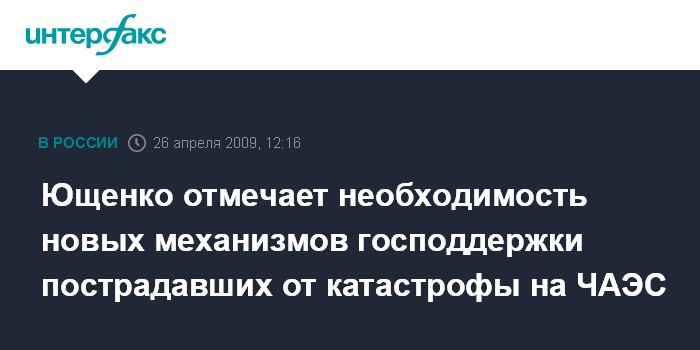 Киев. 26 апреля. INTERFAX.RU - Поддержка пострадавших от Чернобыльской катастрофы должна осуществляться с использованием обновленных экономических и правовых механизмов, заявил президент Украины Виктор Ющенко.