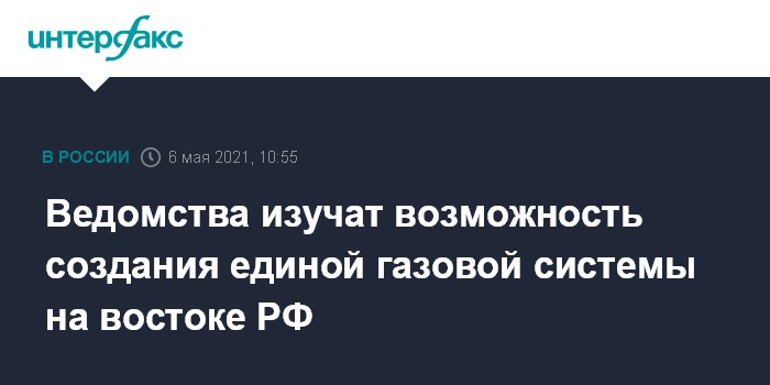 Москва. 6 мая. INTERFAX.RU - Минэнерго, Минвостокразвития, Минстрой, заинтересованные субъекты РФ с участием "Газпрома" и заинтересованных независимых производителей газа во II квартале текущего года должны представить в правительство предложения создания в Восточной Сибири и на Дальнем Востоке единой газовой системы.