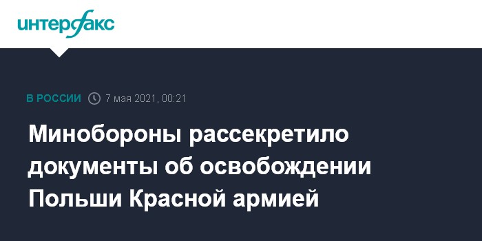 Москва. 7 мая. INTERFAX.RU - Российское военное ведомство разместило на своём интернет-портале новый мультимедийный раздел, посвященный освобождению Польши от немецко-фашистских оккупантов Красной Армией, сообщили в Минобороны РФ.