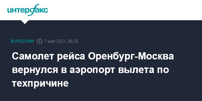 Самолет рейса Оренбург-Москва вернулся в аэропорт вылета по техпричине