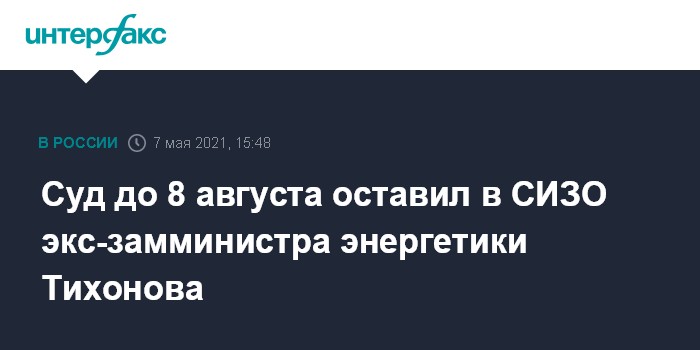 Москва. 7 мая. INTERFAX.RU - Басманный суд Москвы по ходатайству следствия продлил до 8 августа арест бывшего заместителя министра энергетики РФ Анатолия Тихонова, обвиняемого в особо крупном мошенничестве.