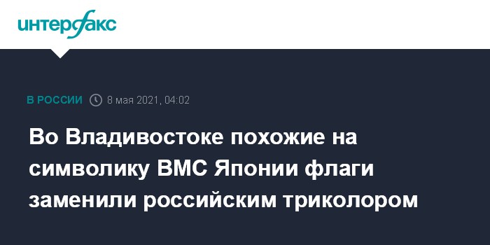 Москва. 8 мая. INTERFAX.RU - Развешенные во Владивостоке ко Дню Победы флаги, напоминающие символику ВМС Японии, заменили после возмущения жителей города. В мэрии пообещали наказать ответственных сотрудников управления культуры.
