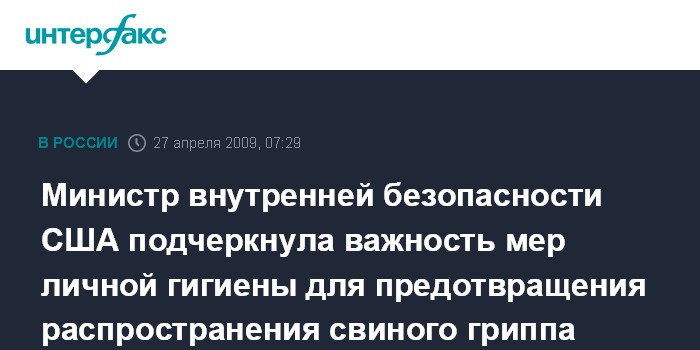 Министр внутренней безопасности США подчеркнула важность мер личной гигиены для предотвращения распространения свиного гриппа