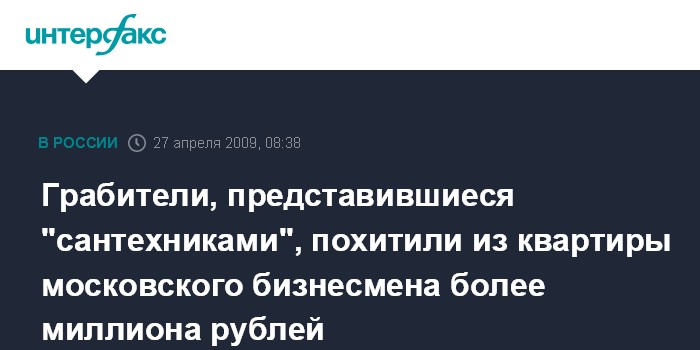 Грабители, представившиеся "сантехниками", похитили из квартиры московского бизнесмена более миллиона рублей