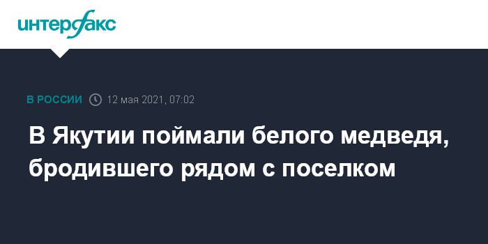 Москва. 12 мая. INTERFAX.RU - Группа специалистов отловила белого медведя, который забрел в поселок Джебарики-Хая Томпонского района Якутии, сообщает пресс-служба Минэкологии региона.