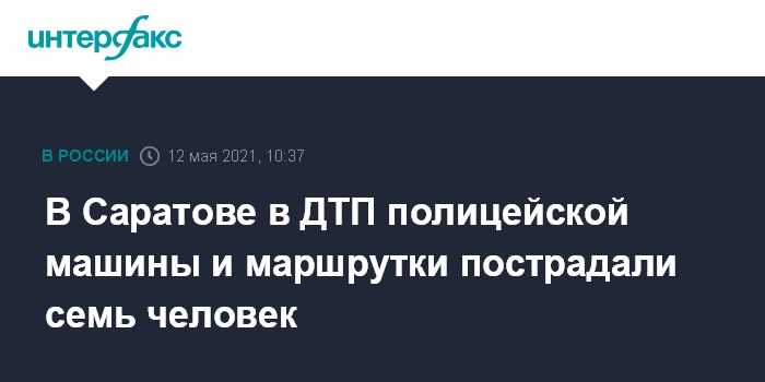 Москва. 12 мая. INTERFAX.RU - На окраине Саратова семь человек пострадали в столкновении полицейской машины и маршрутки с пассажирами, сообщили в областном Минздраве. Пять человек были госпитализированы, еще двоим медицинскую помощь оказали на месте.