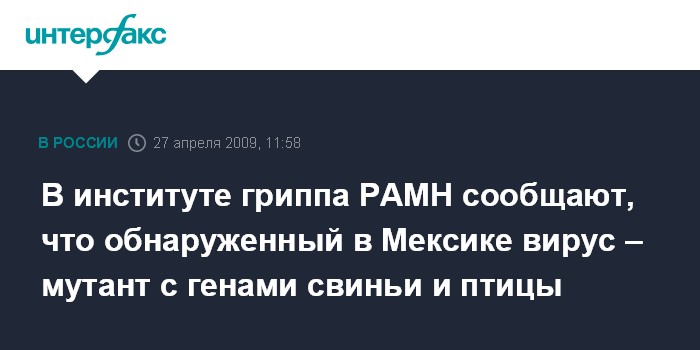 В институте гриппа РАМН сообщают, что обнаруженный в Мексике вирус – мутант с генами свиньи и птицы