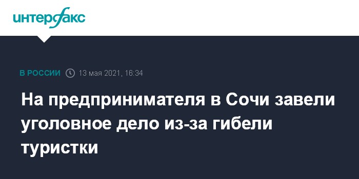 Москва. 13 мая. INTERFAX.RU - Обстоятельства гибели 24-летней туристки во время сплава на лодке-рафт по реке Мзымта в Адлерском районе Сочи расследуют в рамках уголовного дела.