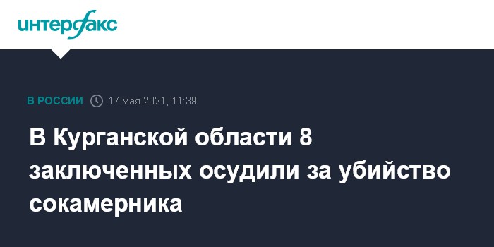 Москва. 17 мая. INTERFAX.RU - Суд Курганской области на основании вердикта присяжных вынес приговор восьми заключенным по делу об убийстве сокамерника, сообщает в понедельник пресс-служба следственного управления СКР по региону.