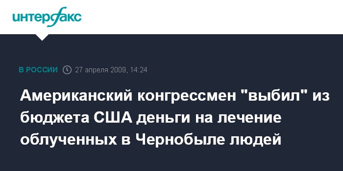 Американский конгрессмен "выбил" из бюджета США деньги на лечение облученных в Чернобыле людей