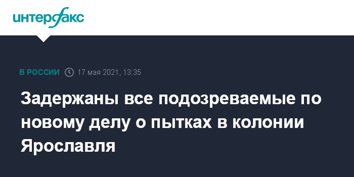 Москва. 17 мая. INTERFAX.RU - Правоохранительные органы задержали всех подозреваемых по новому уголовному делу о пытках заключенного в исправительной колонии №1 УФСИН Ярославской области, сообщает фонд "Общественный вердикт" (признан в РФ иноагентом), представляющий интересы потерпевших.