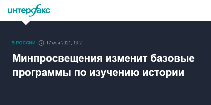Москва. 17 мая. INTERFAX.RU -Минпросвещения России сообщило, что разработает новые базовые рабочие программы для преподавания истории, так как большинство из них требует исправления в части отражения событий Великой Отечественной войны.