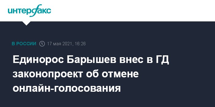 Москва. 17 мая. INTERFAX.RU - Депутат от фракции "Единая Россия" Андрей Барышев внес в Госдуму законопроект об отмене всех форм дистанционного голосования на выборах и референдумах, однако фракция не поддержит инициативу.
