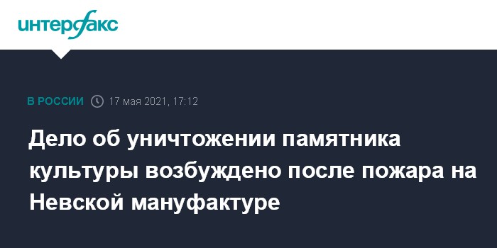 Дело об уничтожении памятника культуры возбуждено после пожара на Невской мануфактуре