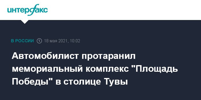 Москва. 18 мая. INTERFAX.RU - Неизвестный водитель на автомобиле протаранил несколько элементов мемориального комплекса "Площадь Победы" в Кызыле, сообщает пресс-служба горадминистрации.