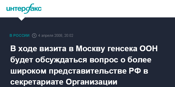 В ходе визита в Москву генсека ООН будет обсуждаться вопрос о более широком представительстве РФ в секретариате Организации