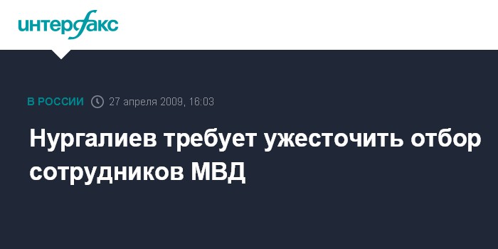 Москва. 27 апреля. INTERFAX.RU - Глава МВД России Рашид Нургалиев направил в органы внутренних дел субъектов РФ указание повысить качество отбора кандидатов на службу в милицию и для назначения на руководящие должности и усилить требования к самим кандидатам, говорится в заявлении министра.