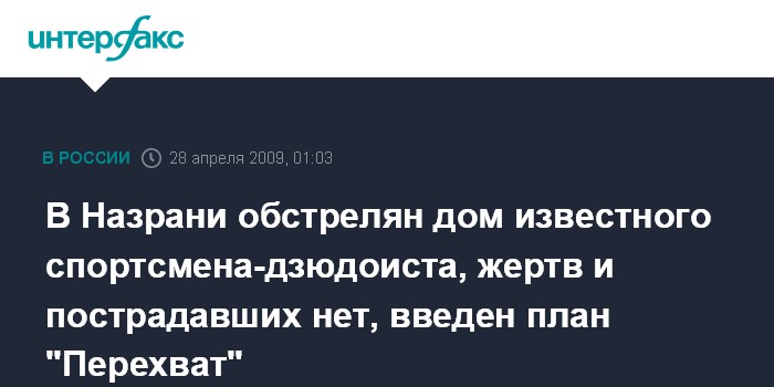 В Назрани обстрелян дом известного спортсмена-дзюдоиста, жертв и пострадавших нет, введен план "Перехват"