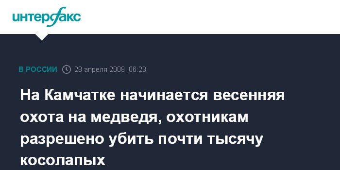Петропавловск-Камчатский. 28 апреля. ИНТЕРФАКС-ДАЛЬНИЙ ВОСТОК - С 25 апреля по 25 мая на территории Камчатского края идет весенняя охота на бурого медведя.