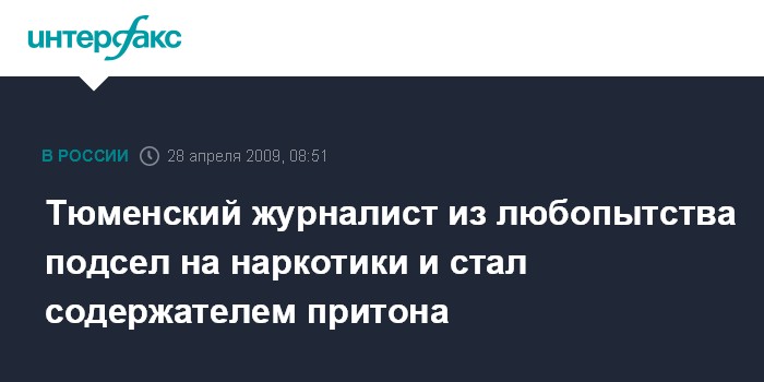 Москва. 28 апреля. INTERFAX.RU - Сотрудники Управления наркоконтроля по Тюменской области на днях выявили содержателя наркопритона, которым оказался один из местных журналистов.