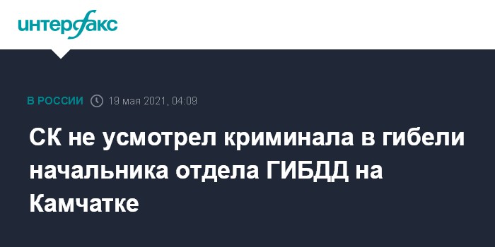Москва. 19 мая. INTERFAX.RU - Следователи завершили проверку по факту гибели начальника отдела ГИБДД по Петропавловску-Камчатскому, утонувшего на рыбалке, и не стали возбуждать уголовное дело.