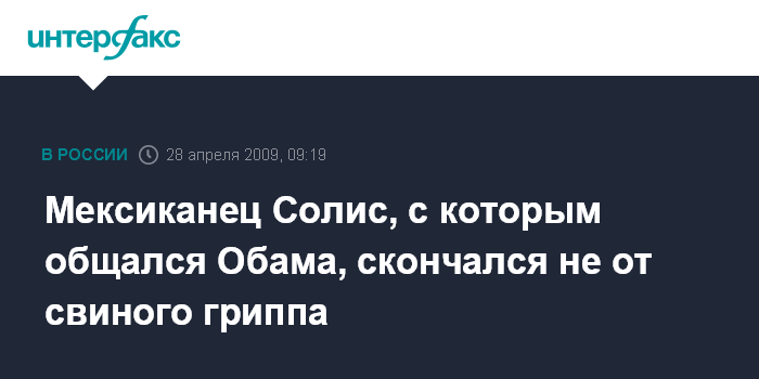 Мексиканец Солис, с которым общался Обама, скончался не от свиного гриппа