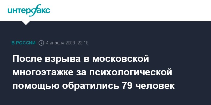 После взрыва в московской многоэтажке за психологической помощью обратились 79 человек