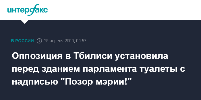 Оппозиция в Тбилиси установила перед зданием парламента туалеты с надписью "Позор мэрии!"