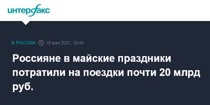 Россияне в майские праздники потратили на поездки почти 20 млрд руб.