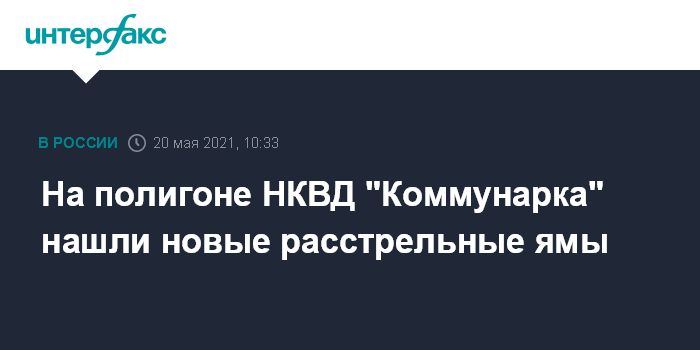Москва. 20 мая. INTERFAX.RU - На спецполигоне НКВД "Коммунарка" археологи нашли новые расстрельные ямы, рассказали "Коммерсанту" в Музее истории ГУЛАГа, по инициативе которого там ведутся поисковые работы.