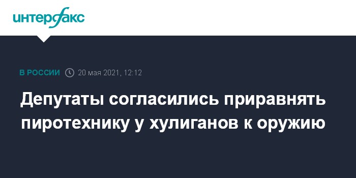 Депутаты согласились приравнять пиротехнику у хулиганов к оружию