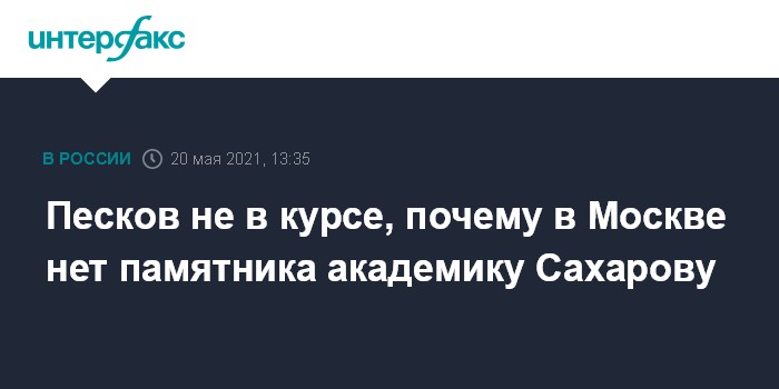 Так пресс-секретарь главы государства Дмитрий Песков ответил на слова журналиста о том, что в декабре 2020 года Путин пообещал правозащитникам обсудить с московскими властями вопрос установки памятника Сахарову в столице к 100-летию академика, однако этот памятник до сих пор не появился.